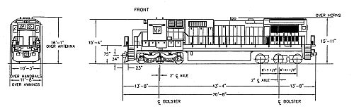 The C40-8 is 70' 8" in length over the couplers and stands 15' 11" high over the horns, and 16' 1" over the antenna