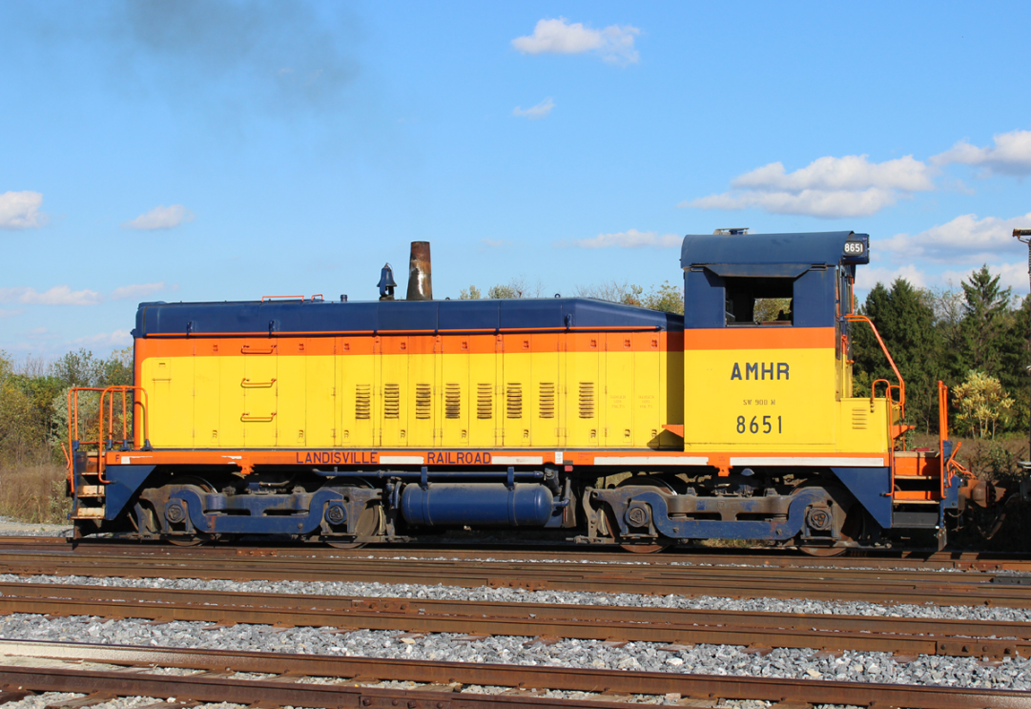 AMHR 8651 is seen on the Landisville Railroad in Landisville, PA on 10/17/14. The unit is ex DCLR 8651/CR 8651/LV 124 which was built as a SW900 and was rebuilt and now classed SW900M.
