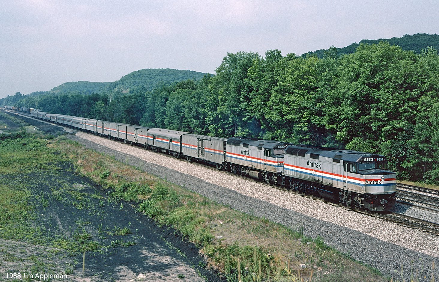 Having just departed Altoona, Amtrak 360 & 383 F40PHs lead Amtrak train 40, the eastbound  "Broadway Limited".