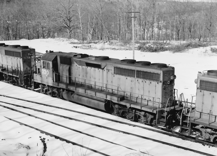 B&M 320, ex CR 3227, in POPY at East Deerfield on March 3, 1984.