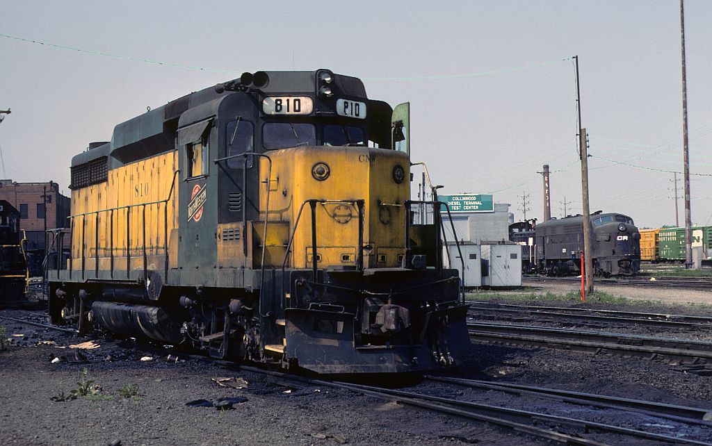 Another one of the goodies Conrail used during those first years was this Chicago and North Western GP-30. CNW 810 was delivered in April 1963 and has a former PRR FP7 and some switchers to keep it company at the P1A shop at Collinwood in this May 1977 view.
