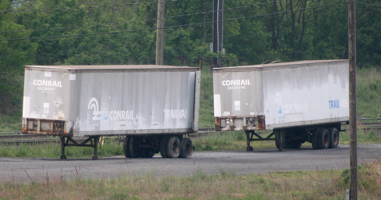 Two Conrail Trailvans (CRZ 203071 and CRZ 203719) are seen here sitting in the middle of the Norfolk Southern Enola, PA yard.