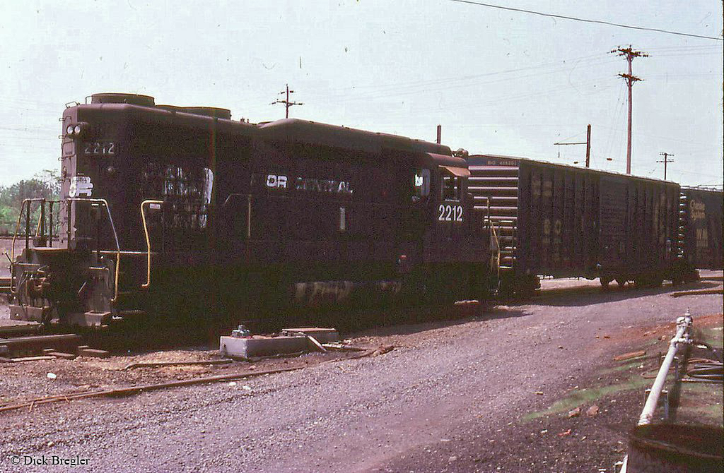Conrail GP30 2212 (ex-PC 2212, nee-PRR 2212) is seen in dire need of a coat of blue paint at Morrisville, PA back in 1981.