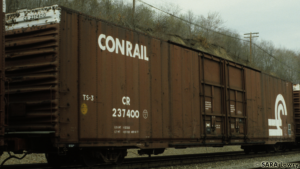 Conrail 237400 is seen at Altoona, PA. Car is ex PC 237400/PRR 110354. Photographer Sara Lowry See More Photos Conrail Freight Cars Boxcars 86' Boxcars Class X60C