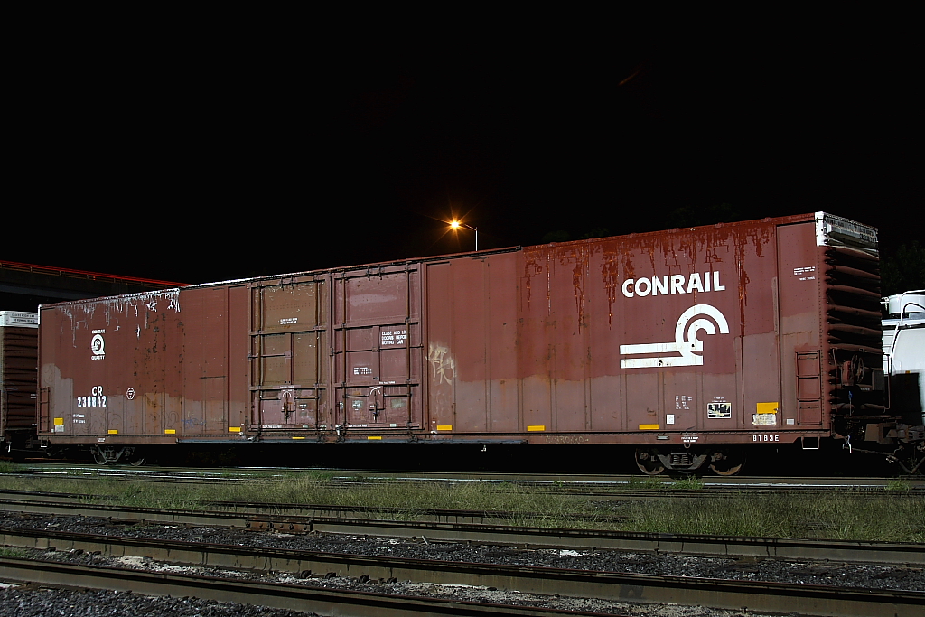 Awaiting shipment back to Detroit for more auto parts, CR 238842 sits under the lights at Enola Yard..