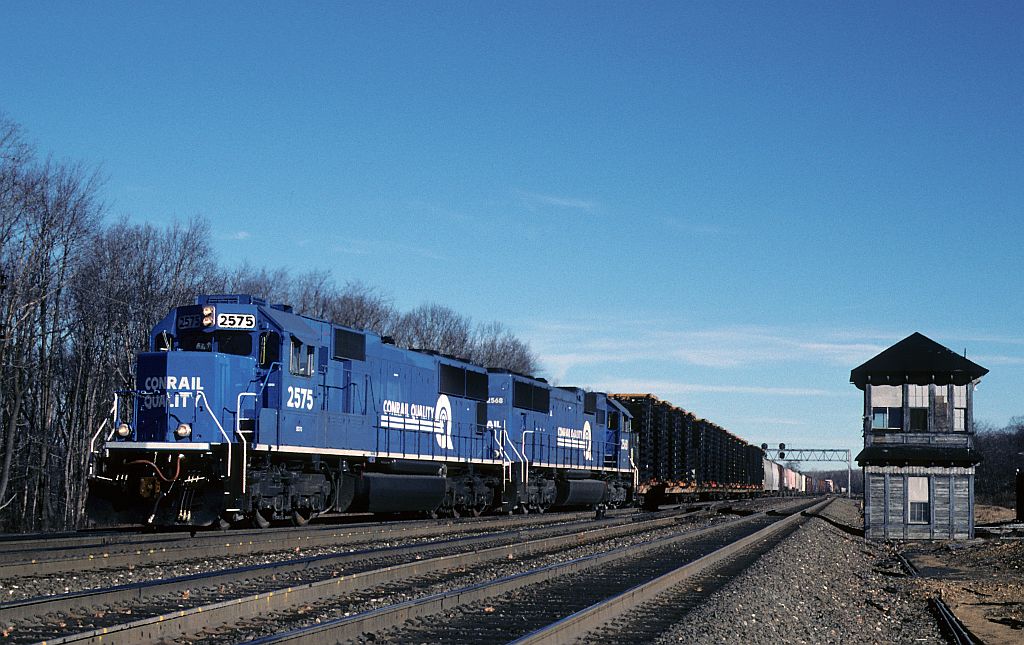 A pair of SD70's built to NS specs cross over at CP MO in Cresson, Pa with train ALPI-2F. These were nice units despite being built with a standard cab well into the wide cab era. I put the first miles on many of these when they came out of JBS and went west to Conway on train ATPI, smooth ride, sweet horn, but a little noisy.