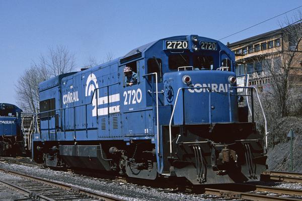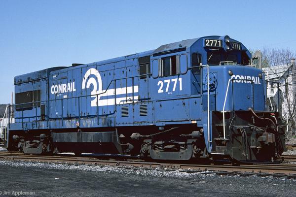 A trio of CR units, with PC U23B 2756 in the middle, pull through Allentown yard in April, 1977.