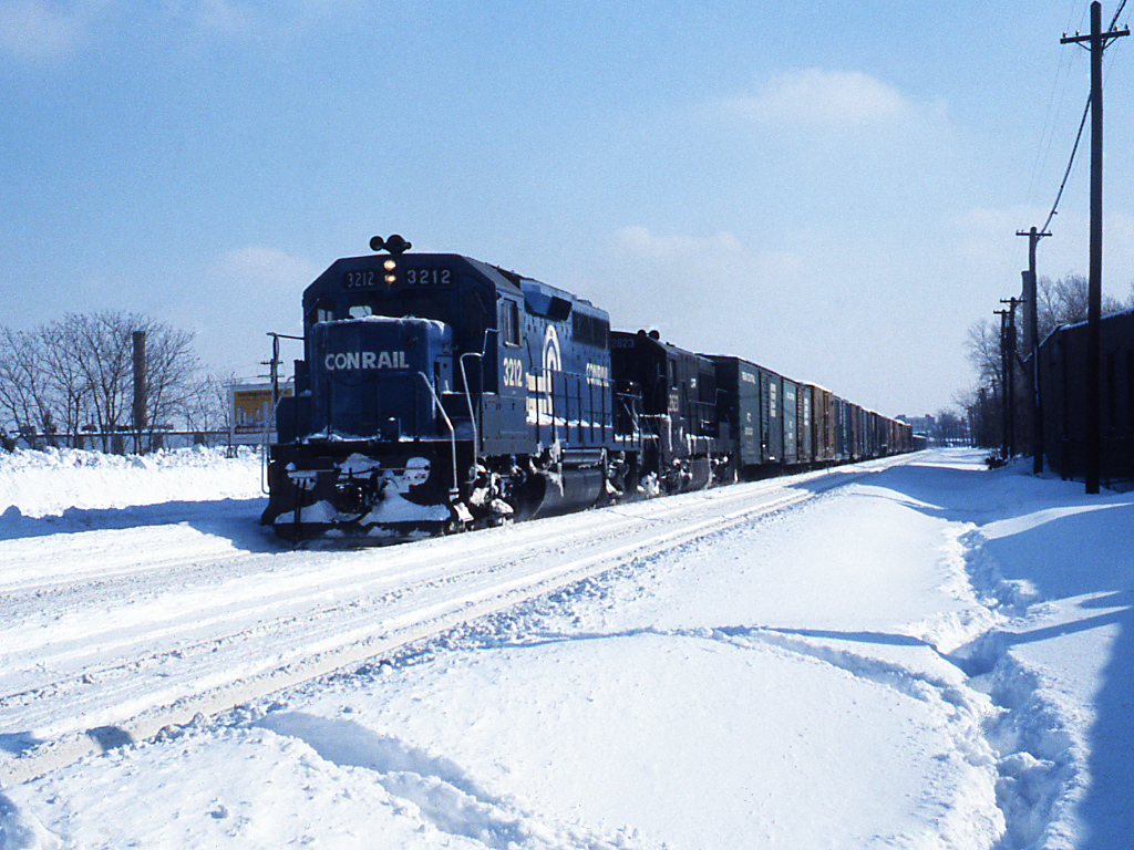 CRs first 2 winters were pretty hard. A Westbound passes thru deep snow at the East end of Goodman Street yard.