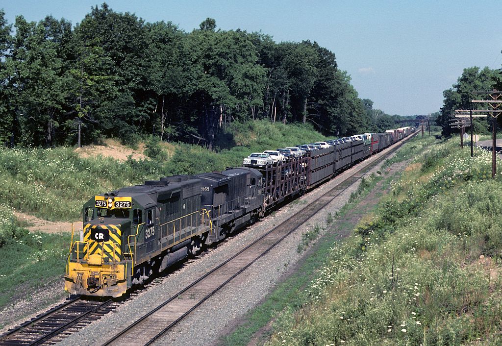 In this circa January 1979 photo, CR patched ex Reading GP40-2 3275 is on the point of an intermodal train at an unknown location. Russel Heine photo, Chris Howe collection