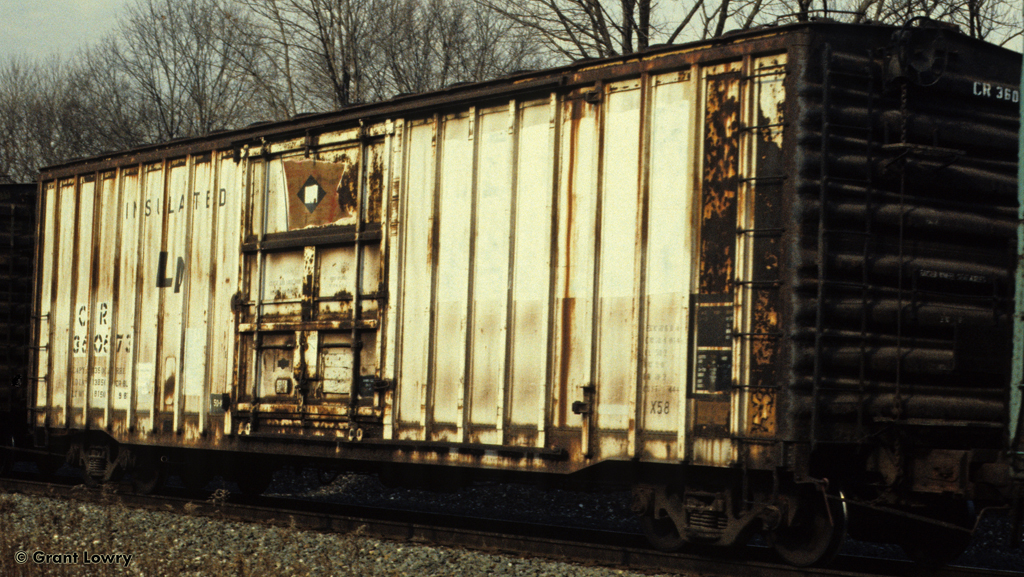 Conrail 360673 is seen at Cove, PA in the mid 1980s. Car is ex LV 7106.
