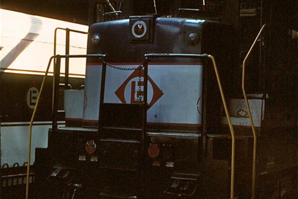 CR-operated former EL U34CH 3355 and 3369 (CR roster 4155 and 4169, respectively) wait with their Comet I cars to pull out of Hoboken Terminal in August, 1977.
