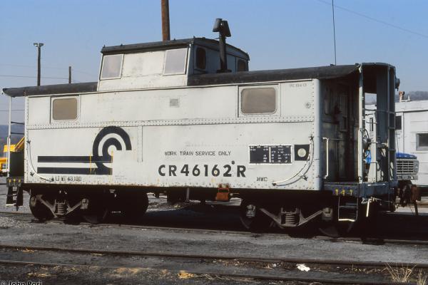 Conrail class N5 MOW cabin 46162 is at Lewistown, PA in 1979.