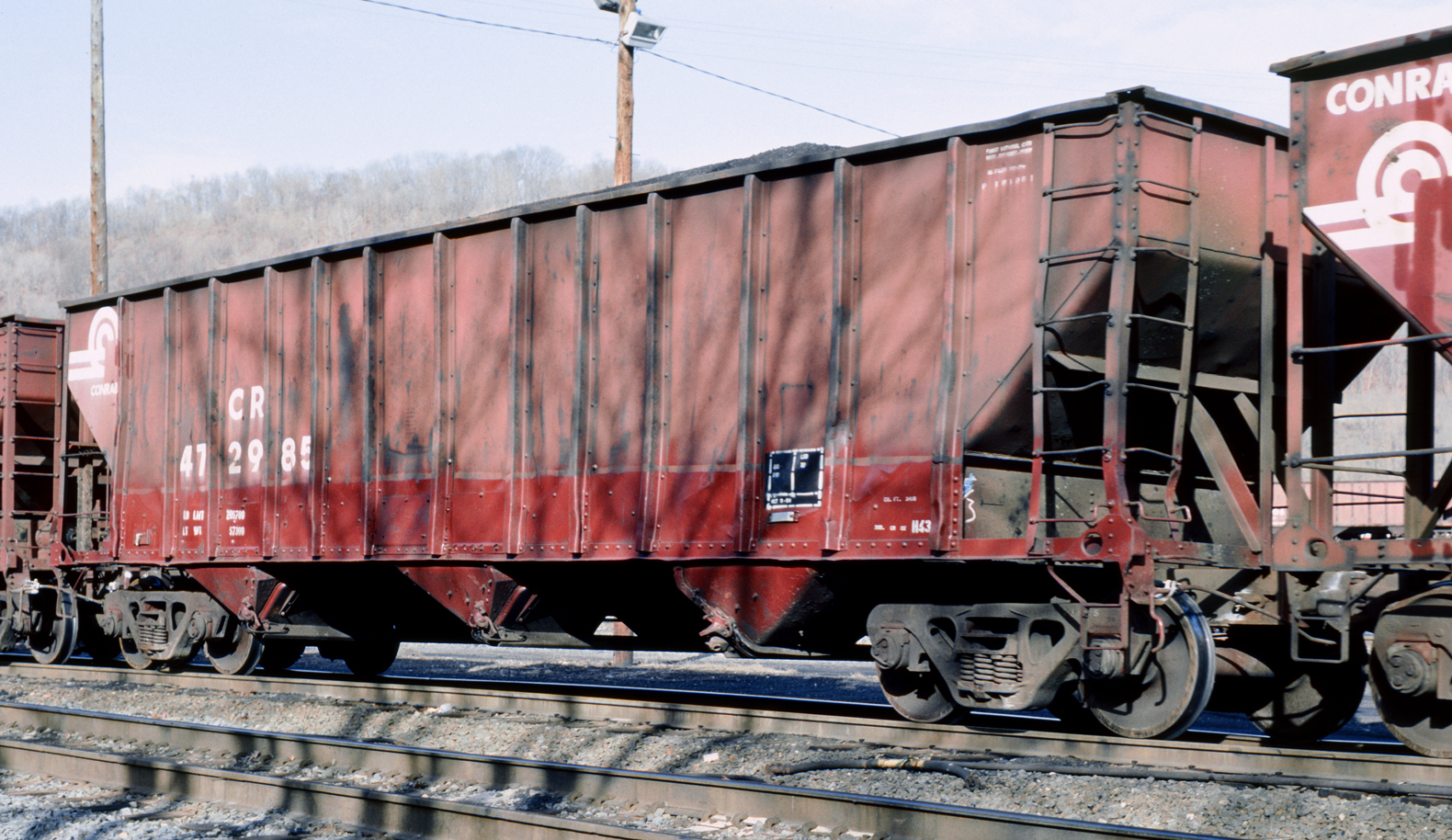 CR 472985 was photographed on the MGA at West Brownsville, PA on 1/30/93. Car is ex PRR 181061 and was built ?-64. It was deleted on 9-15-94.