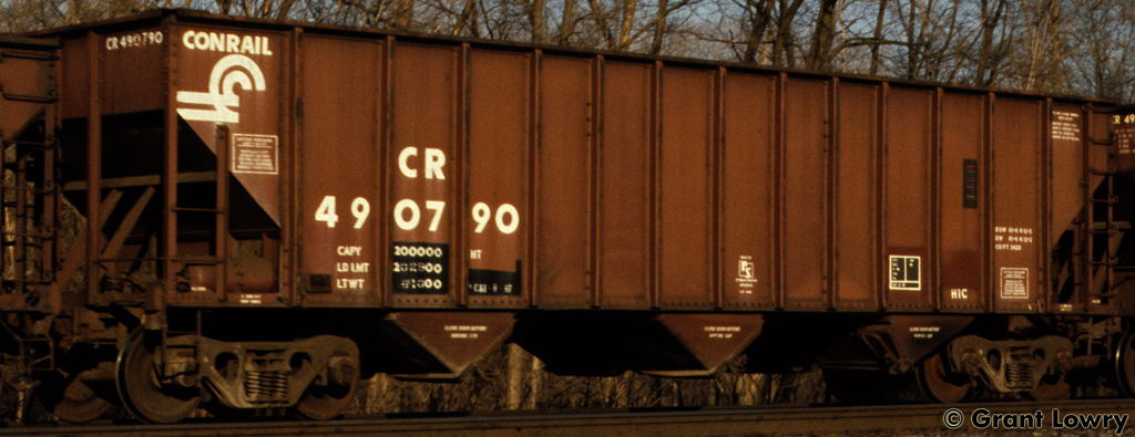 Conrail 490790 is seen at Cove, PA in the mid 1980s