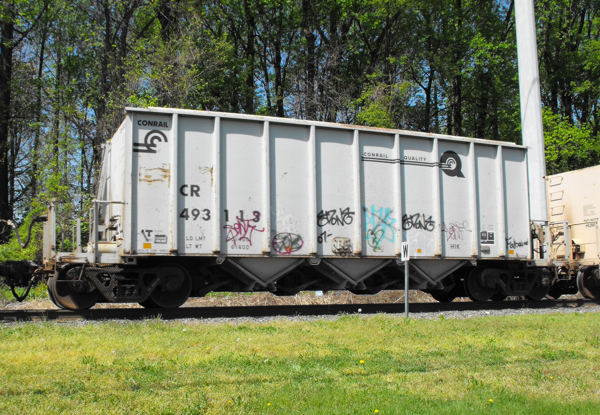 CR 493113 is seen in the consist of NS 12G at Newark, DE on 4/20/10. Car was built 1-92 by Trinity.