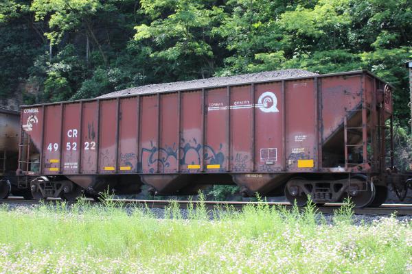 The left end of the right side of CR 495014 is seen at Deepwater, NJ on 1/31/14. Car was built 6-93 by HCS.