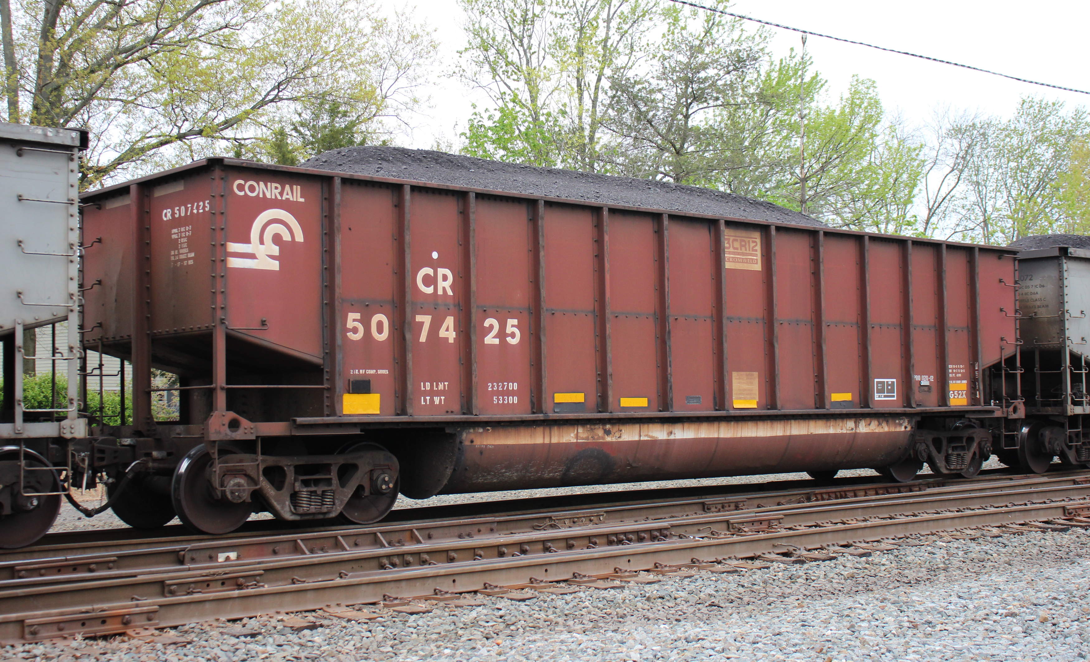 CR 507425 is seen in the consist of NS Y90 at Perryville, MD on 4/24/21. Car was built 7-97 (painted 7-17-97) by HCS.