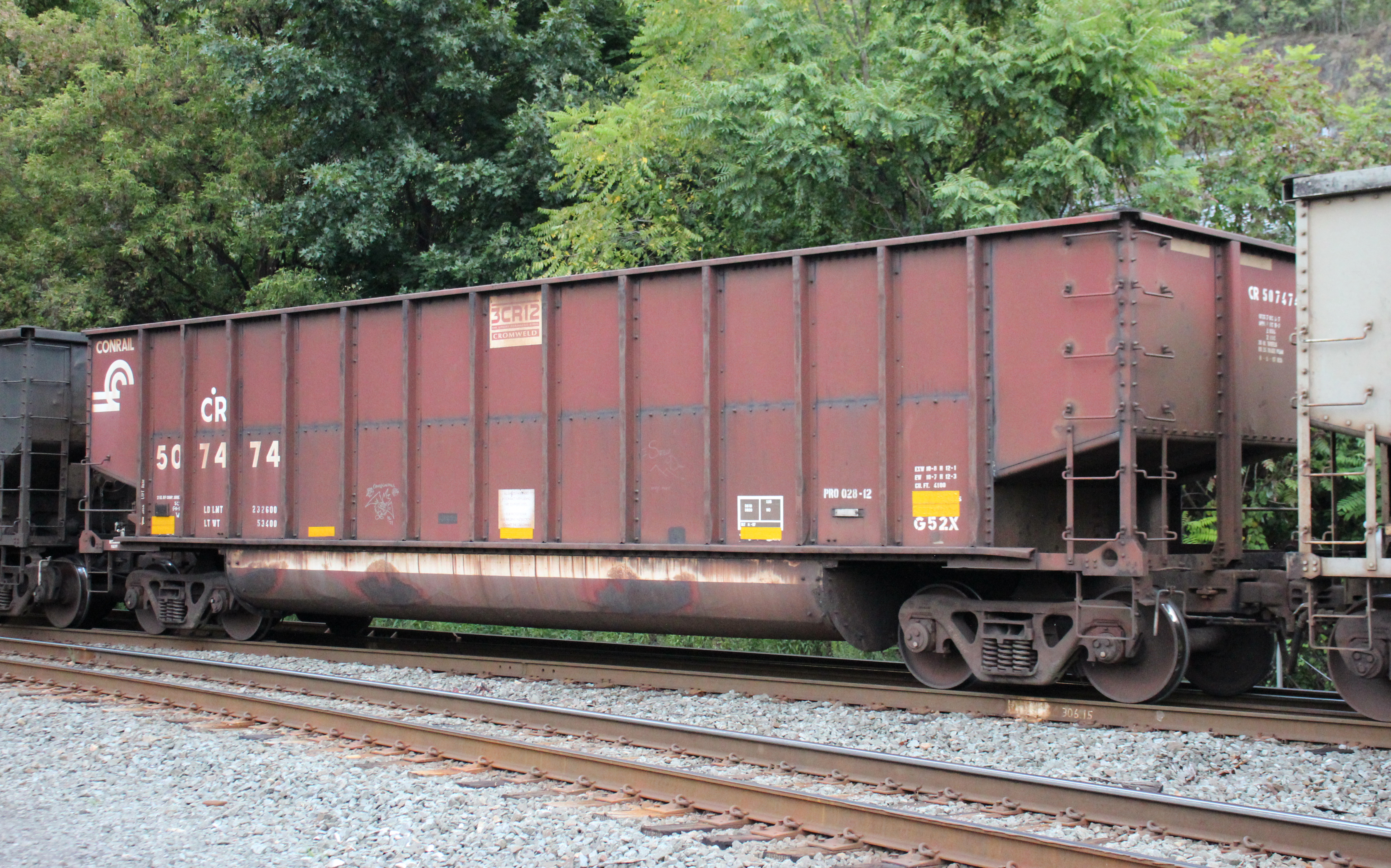 CR 507474 is seen in the consist of NS 633 at Rockville, PA on 9/6/25. Car was built 8-97 (painted 8-9-97) by HCS.