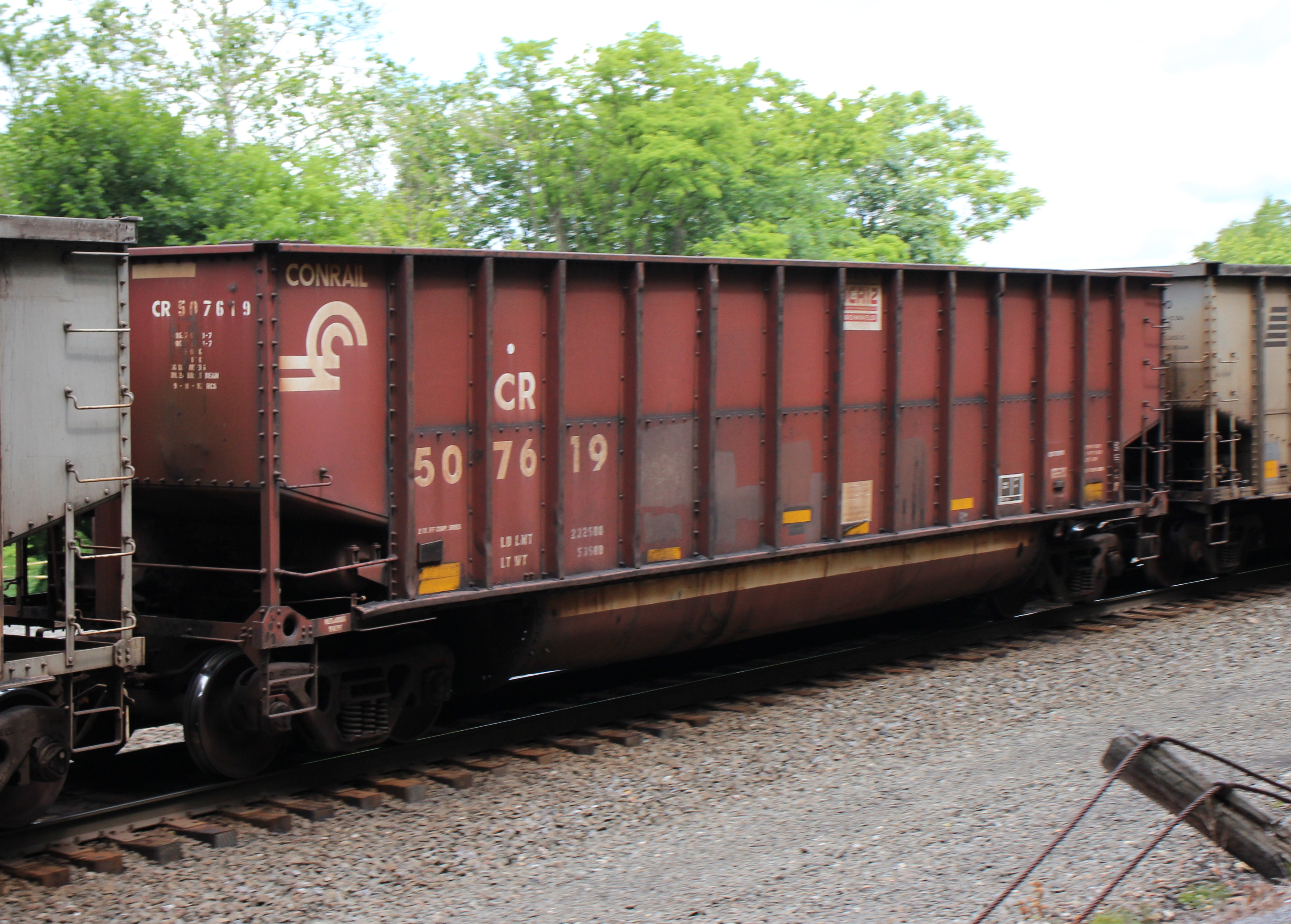 CR 507619 is seen in the consist of NS 595 at Tyrone, PA on 6/25/23. Car was built 9-97 (painted 9-11-97) by HCS.