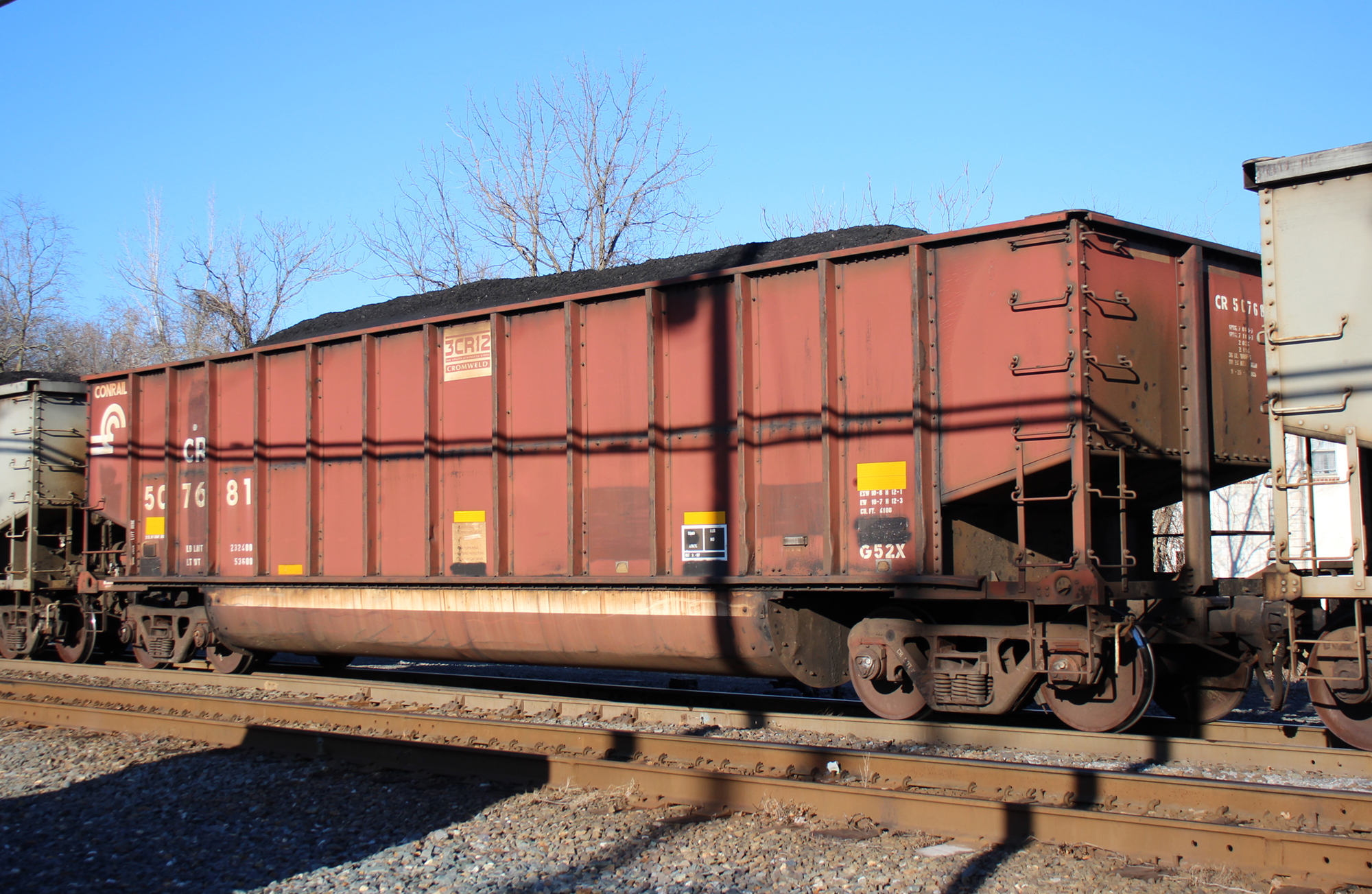 CR 507681 is seen in the consist of 590 at Perryville, MD on 2/6/22. Car was built 9-97 (painted 9-25-97) by HCS.