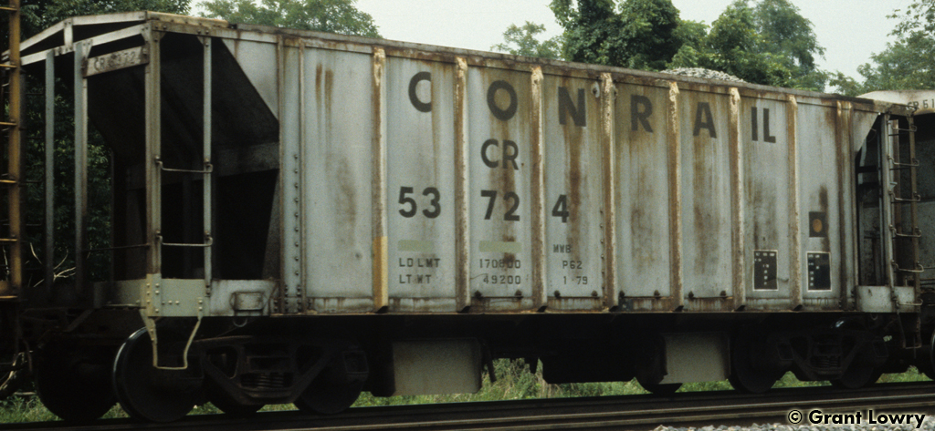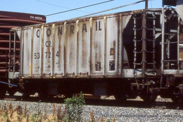 Conrail 53724 is seen at Palmyra, PA. Car is ex LV 50516 blt 6-53 rebuilt 1-79.
