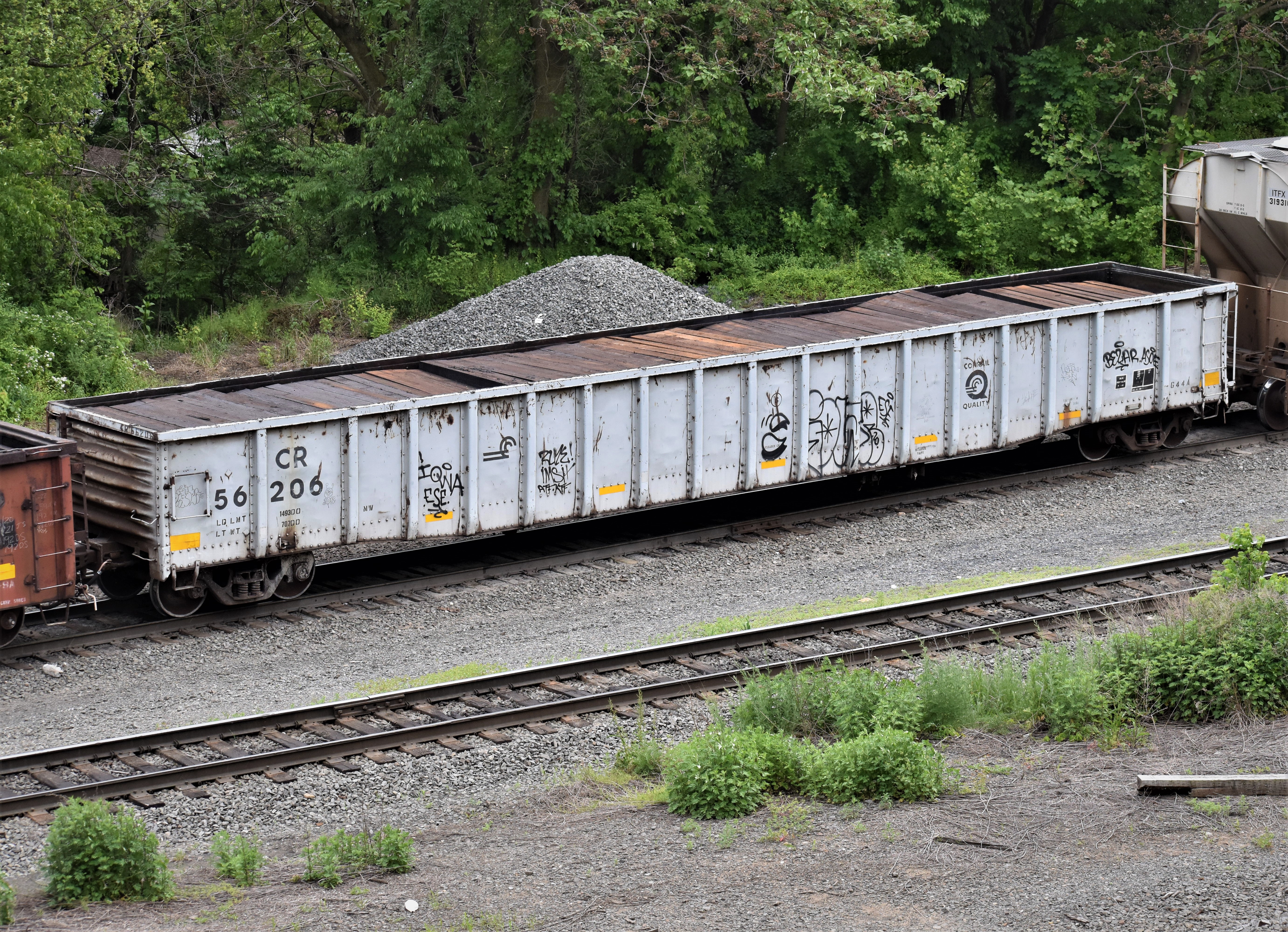 Conrail gondola #56206 with load of crossties. Enola, Pa. Spotted on May 16, 2023.