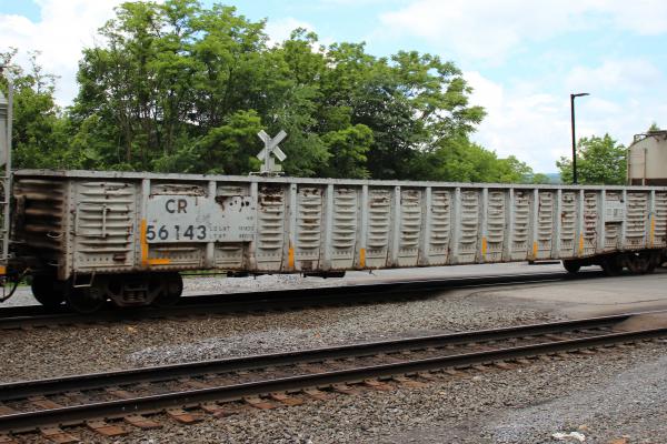 CR 56280 is seen at Enola, PA on 4/15/23. Car is ex PRR 442587, weighted 12-12-95 (possibly painted) and was built 7-66.