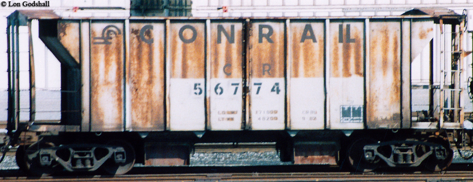 Car is ex PRR. Note that the number is out of the normal series for these ballast cars (numbered just above the BH1C's purchased by Conrail).