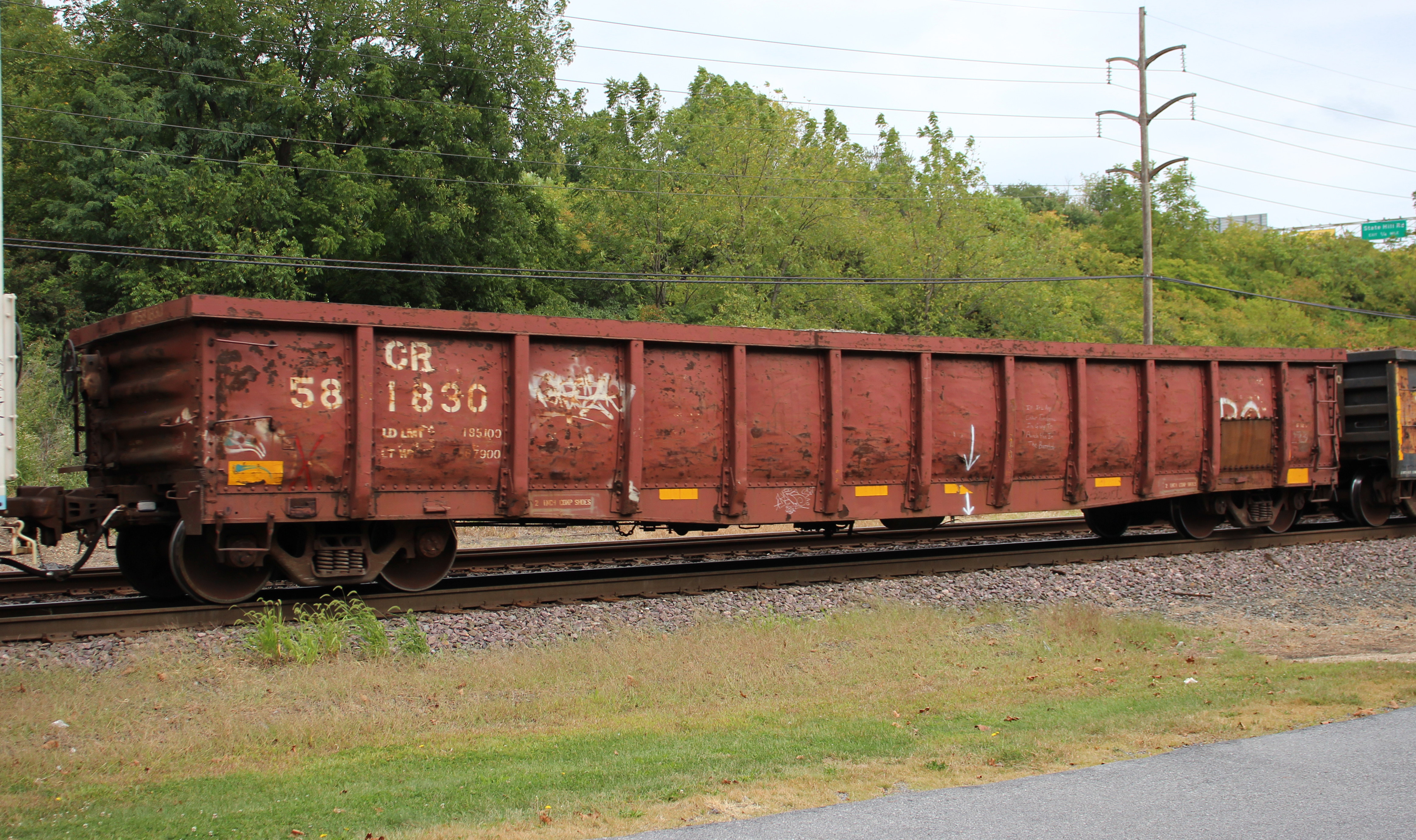 CR 581830 is seen in the consist of NS 39G at Wyomissing, PA on 9/21/25. Car was built 4-80 by CR.