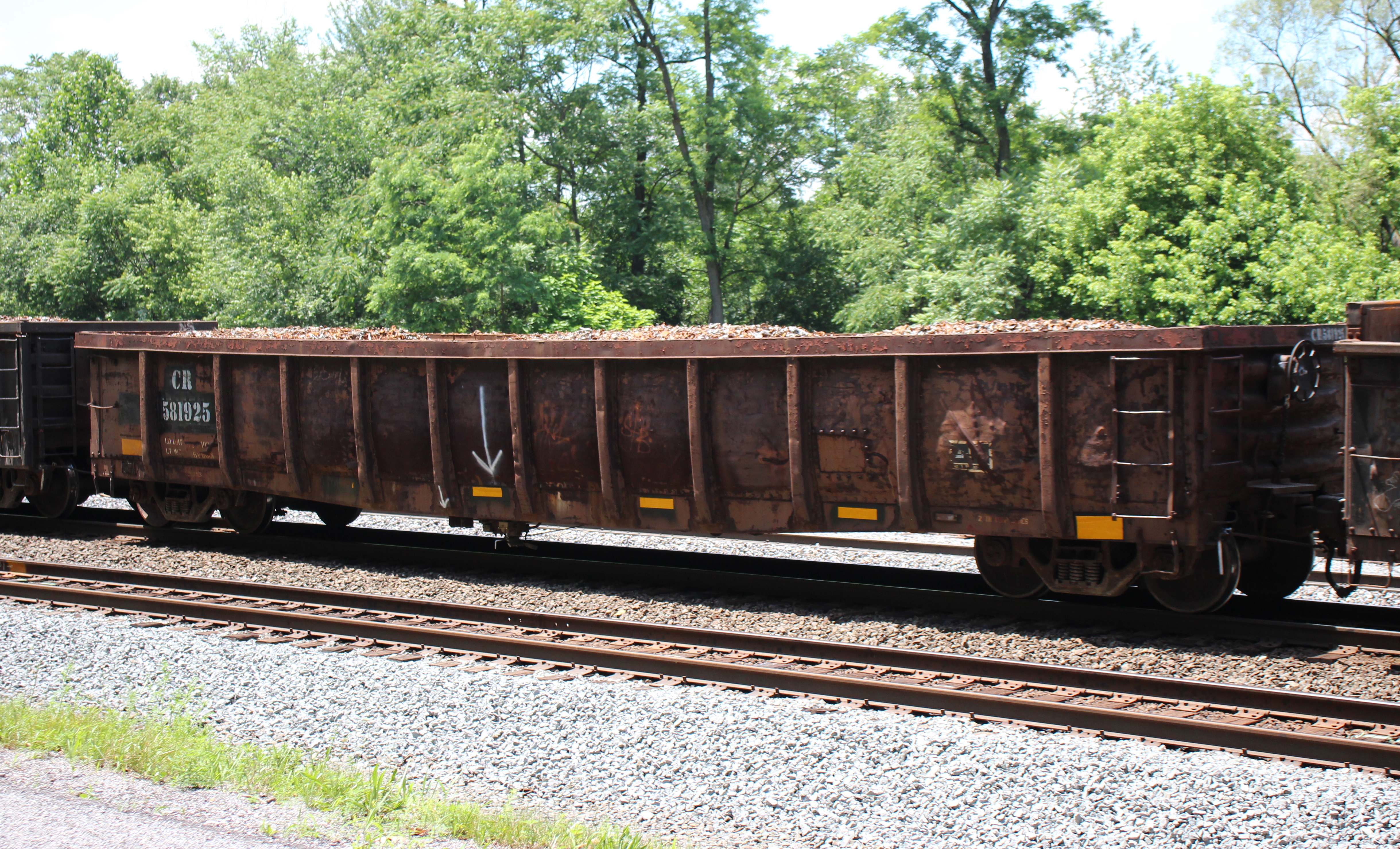 CR 581925 is seen in the consist of NS 39G at Tyrone, PA on 6/29/25. Car was built 5-80 by CR.
