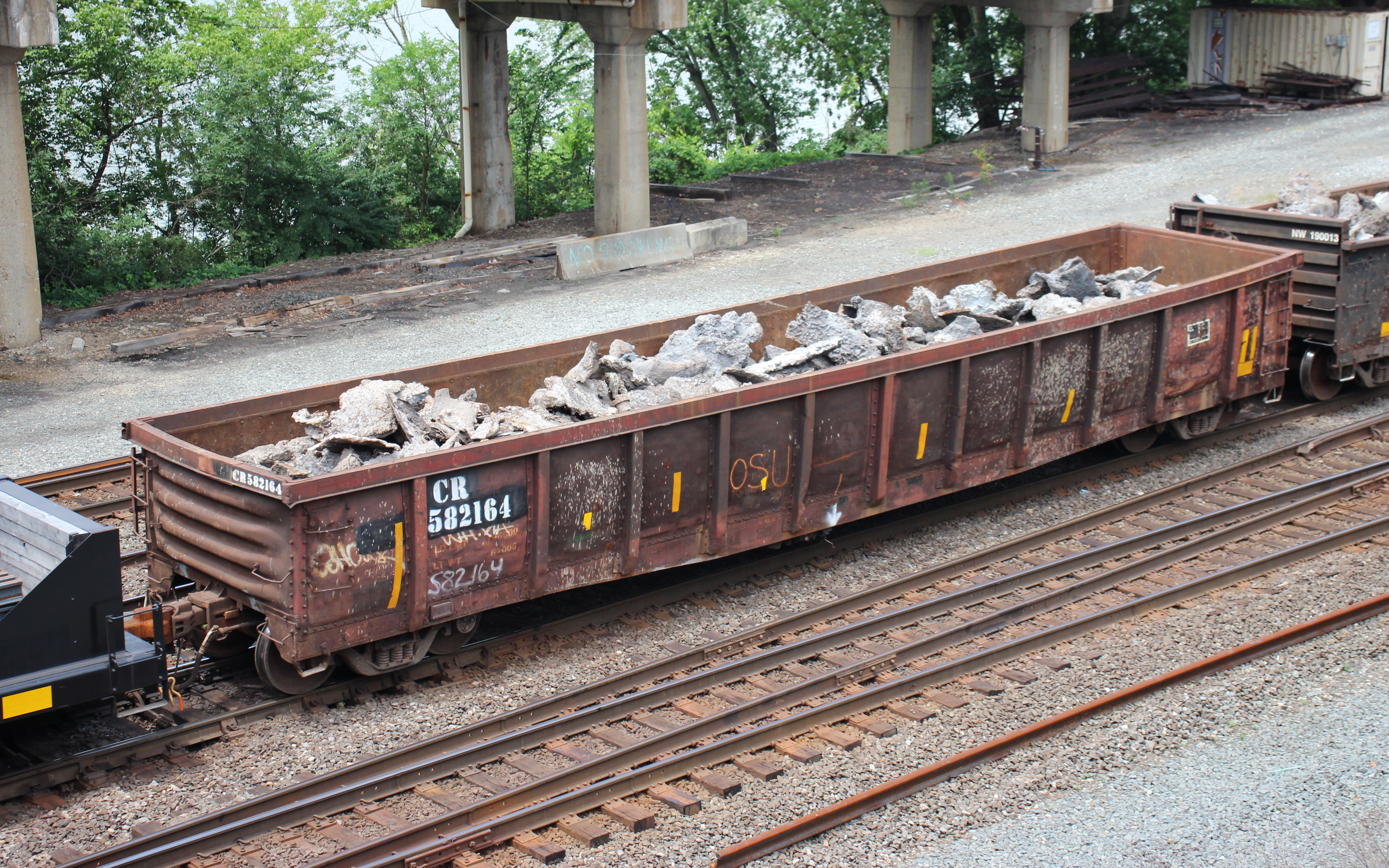 CR 582164 is seen in the consist of NS 11V at Baden (East Conway), PA on 6/28/25. Car was built 6-80 by CR.