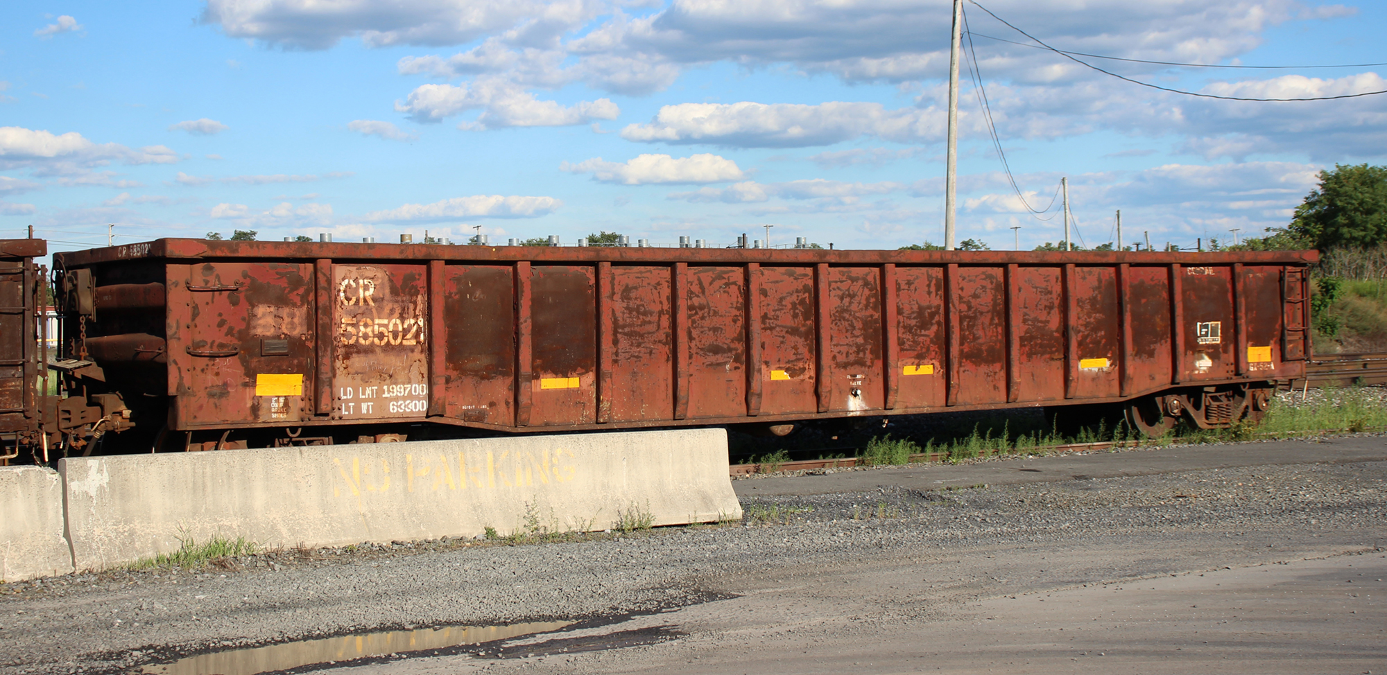 CR 585021 is seen at Enola, PA on 7/30/22. Car is ex DTI 9663, built 10-71 and rebuilt 7-91.
