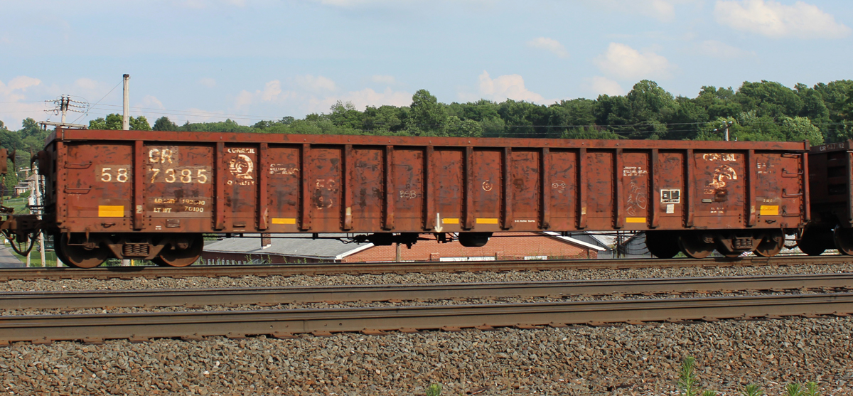 CR 587385 is seen in the consist of EB NS 11X at Cresson, PA on 6/12/15. Car is ex CR 583882/NYC unknown.