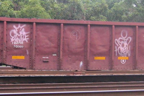 CR 589005 seen in a slab steel train stopped at Port Kennedy station, Valley Forge Park, summer 2006.