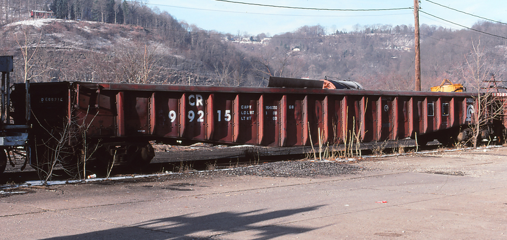 CR 599215 is seen in MOW service at Sewickly PA on 2/7/98. Car is ex PRR 379841.