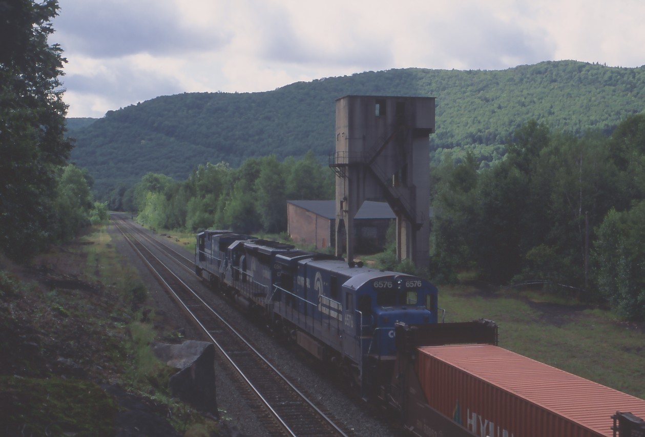 C30-7A 6576 brings up the rear of the lash-up on TV6 in Chester, MA. on Aug. 29, 1992.