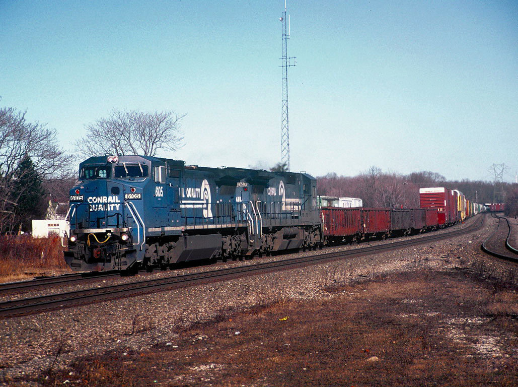 Conrail 6105 & 6047 are on Westbound Cone BUEL-7 @ CP127.7 at Ashtabula , Ohio on Trk# 1