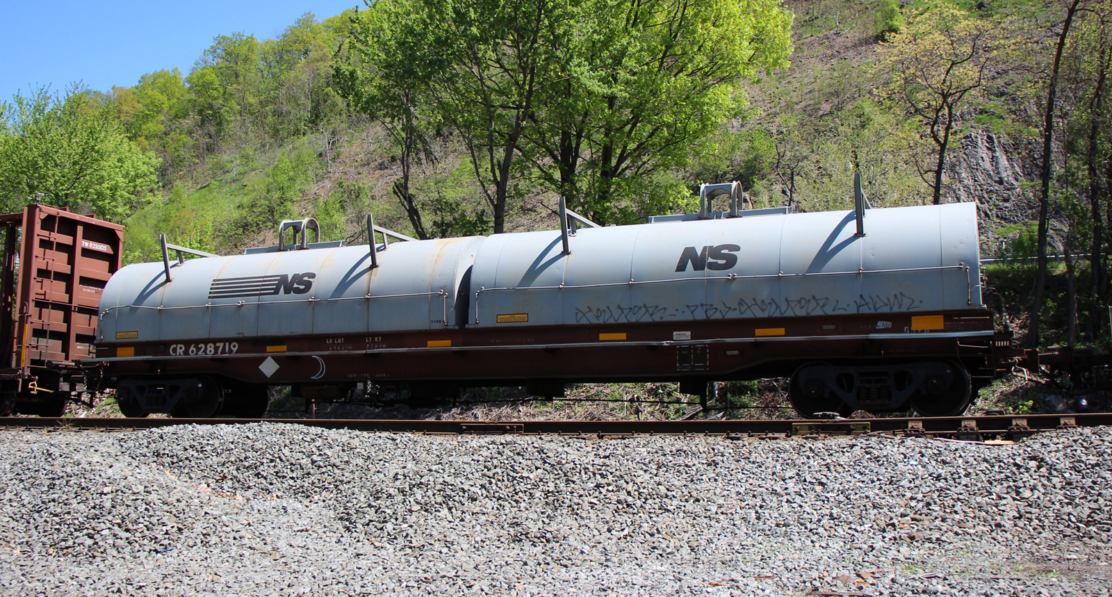 CR 628719 is seen in the consist of NS M9G at Rockville, PA on 4/27/19. Car was built 2-80 by Portec.