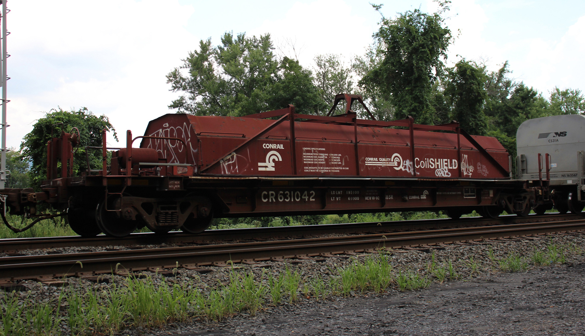 CR 631042 is seen in the consist of NS 35A at Marysville, PA on 8/17/19. Car was built 10-92 by Thrall.