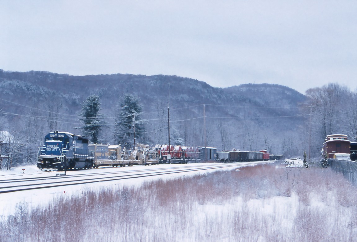 CR 6427 laying over in Chester, MA. with a cable laying train on Nov. 15, 1997.