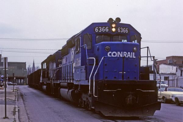 CR 6440, one of the SD40-2's with the star below the cab for testing purposes, is seen at Rutherford, PA on 11/9/1985.