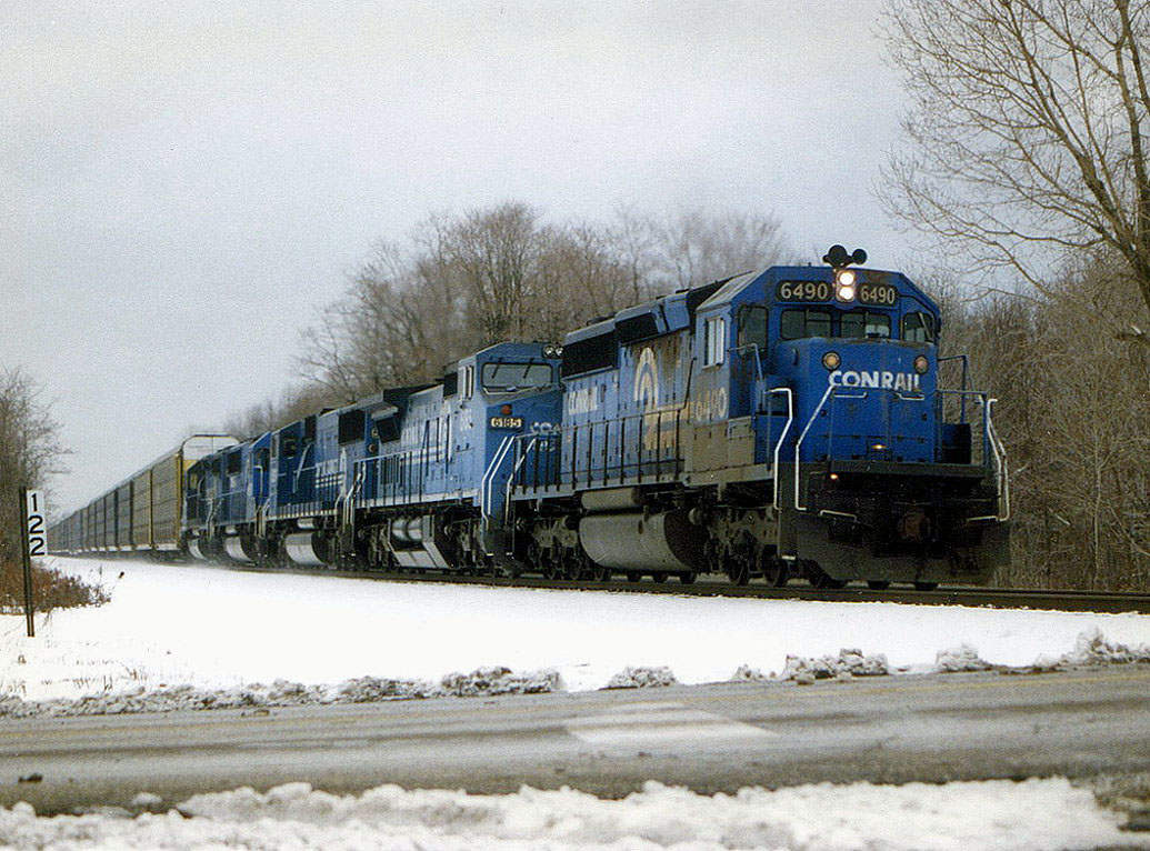 Conrail 6490 leads an Eastbound Autorack train at MP 122 on track number two, North Kingsville, Ohio