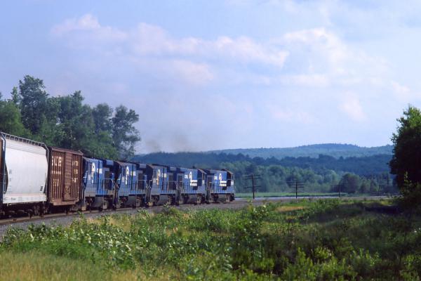 C30-7A 6580 leads SEBO around mile 142.2 in Hinsdale, MA. on July 29, 1989.