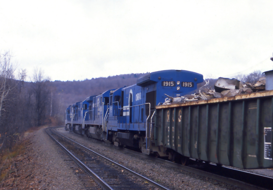 B23-7 1915 has the trail position in NHSE going into Bancroft, MA. on Nov. 2, 1984.