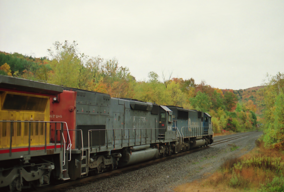 EsPee SD45T-2 6796 is second out on SEPW at Chester, MA. on Oct. 10, 1998.