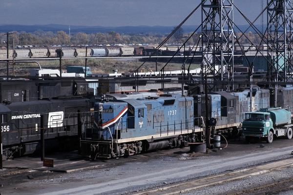 Boston and Maine GP9 1737 on fuel pad at Selkirk on October 8, 1976