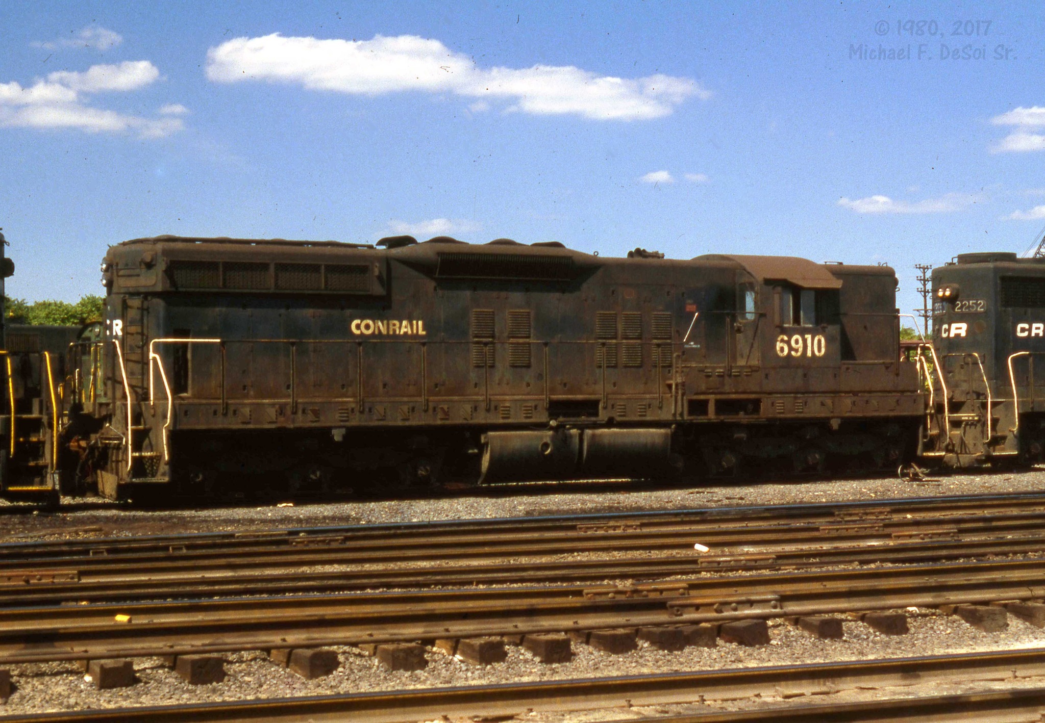 Conrail (ex PC) SD-9 #6910 is dead in Pavonia yard in Camden, N.J. September 7, 1980