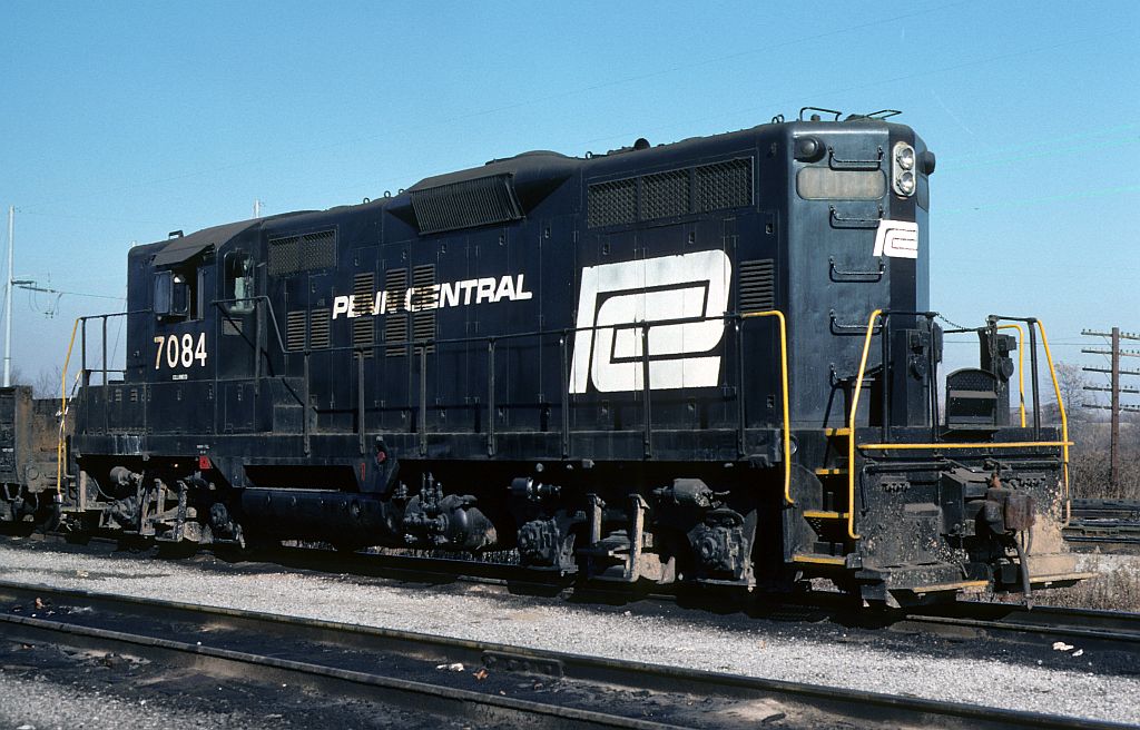 A Penn Central lettered GP-9, now the property of Conrail, pauses for a moment at Motor yard in November of 1976.