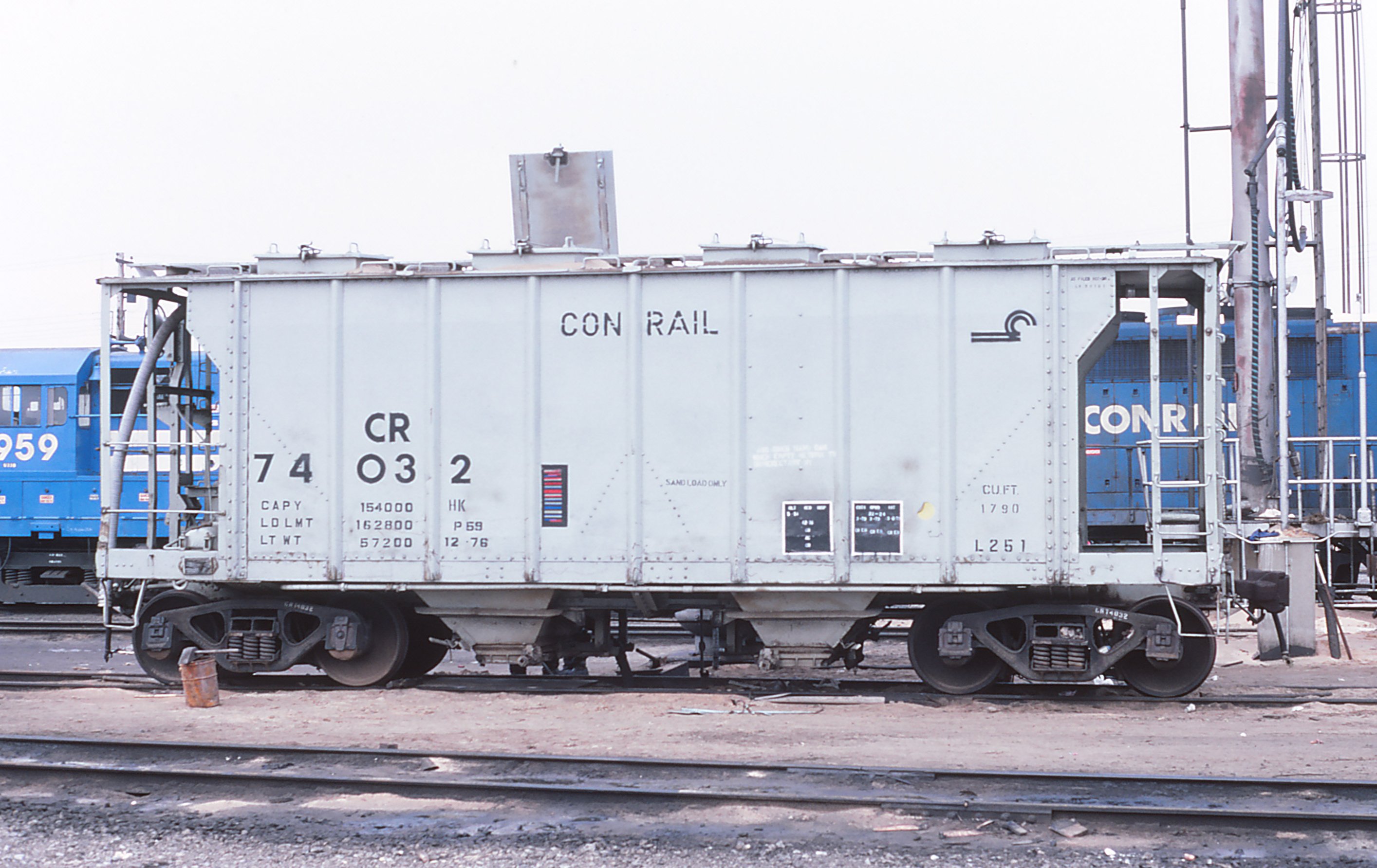 CR 74032 is seen at Camden, NJ on 11/7/87. Car is ex LV 90101/LV 50255, built 6-29 and was painted P59 12-76. It was deleted by CR on 10/9/98.