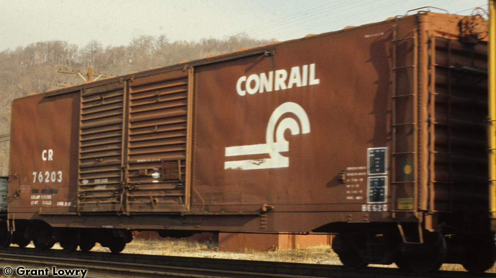 Conrail 76203 is seen at Leetsdale, PA